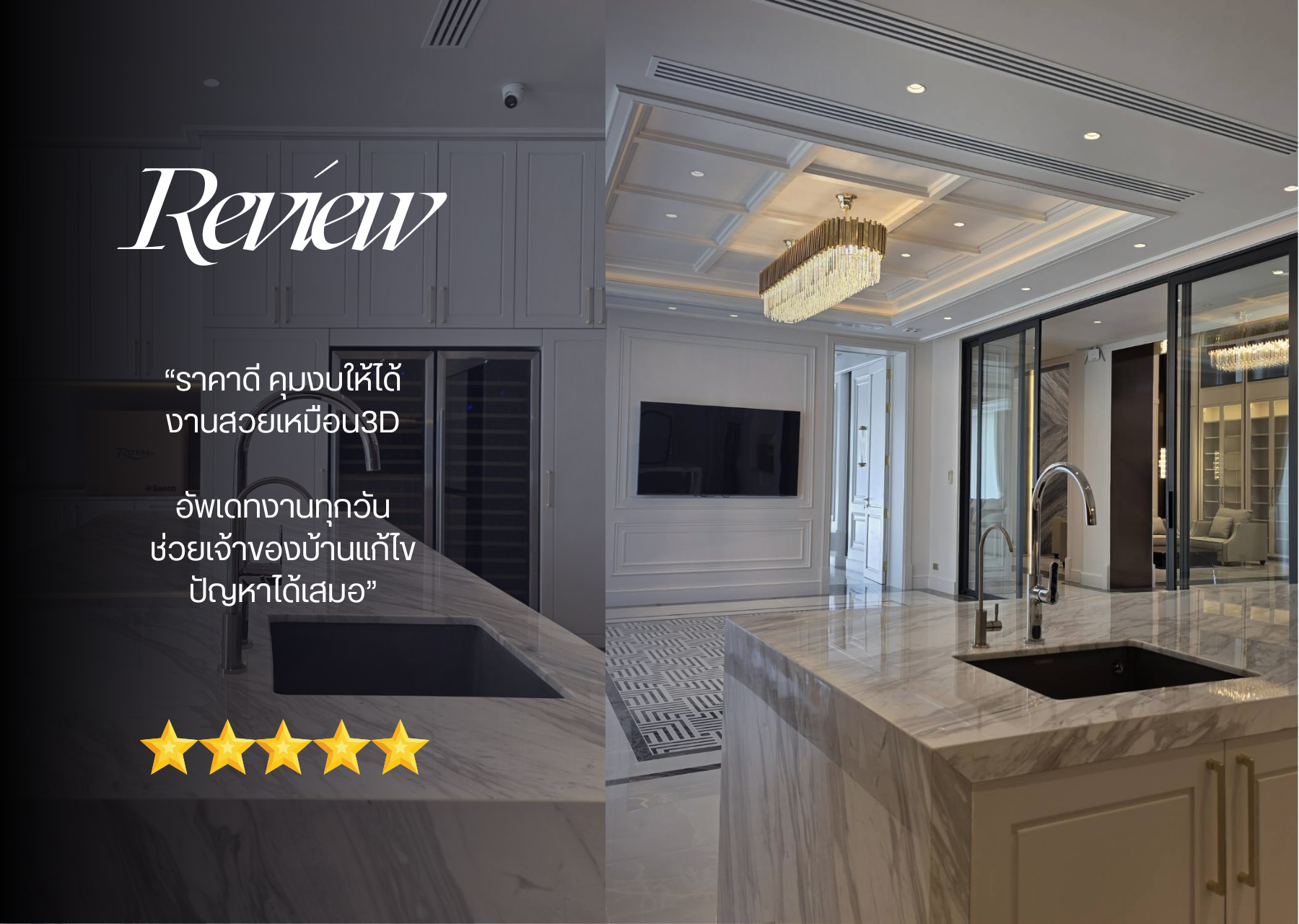 บริษัทรับสร้างบ้านหรูระดับพรี่เมี่ยมของเราเติบโตมาภายใต้แนวคิดแนวคิดที่ว่า “กำไรไม่ใช่ตัวเลข แต่เป็นความพึงพอใจสูงสุดของลูกค้า” นั่นทำให้มีลูกค้าคนสำคัญมากมายเข้ามาใช้บริการออกแบบสร้างบ้านและตกแต่งภายในจากเรา มั่นใจด้วยทีมวิศวกร สถาปนิก ดีไซเนอร์ และช่างผู้เชี่ยวชาญ ที่พร้อมจะรังสรรค์บ้านหรูของคุณให้ออกมาดีที่สุด ไม่ใช่เพียงผลงานของเราที่เป็นที่บอกต่อกันในวงการ แต่เป็นการบริการและความเอาใจใส่ที่เป็นเลิศ ดูแลบ้านทุกหลังเปรียบเสมือนบ้านของเราเอง เราพร้อมที่จะสรรค์สร้างผลงานและเติมเต็มทุกจินตนาการของลูกค้าทุกท่านให้ออกมาลงตัวมากที่สุดภายใต้งบประมาณที่คุณต้องการด้วยทีมงานระดับมืออาชีพ ขอให้เราได้เป็นส่วนหนึ่งของผลงานศิลปะอันล้ำค่าของคุณ