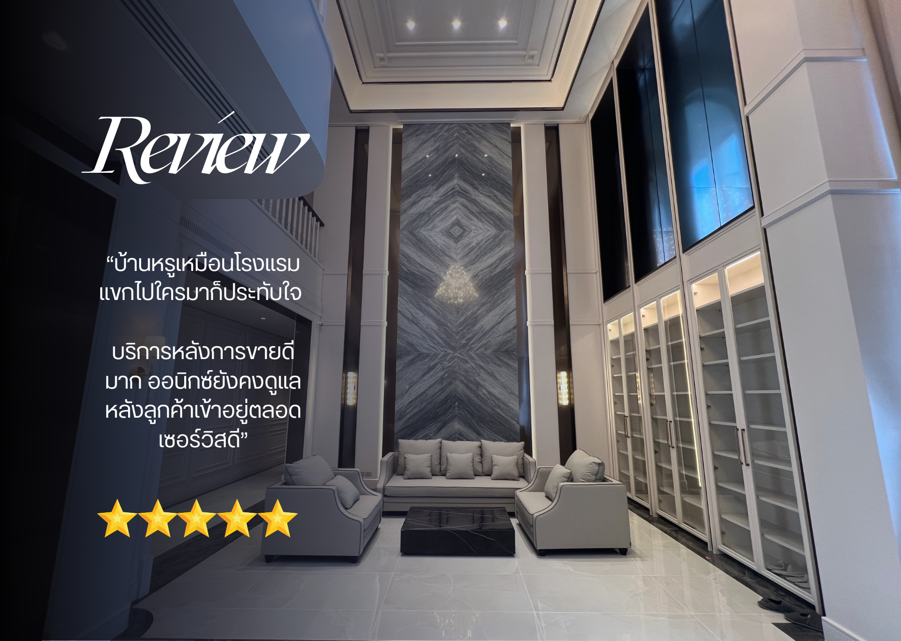 ความสำเร็จของบ้านหรูระดับพรีเมี่ยมที่ทุกคนประทับใจ หนึ่งเดียวในย่านอยู่อาศัยของคุณ เรามีแบบบ้านหรูให้เลือกหลากหลายสไตล์ สามารถปรับฟังก์ชั่นใหม่ได้ตามต้องการ และมีบริการออกแบบใหม่ทั้งหมดเพื่อตอบโจทย์ไลฟ์สไตล์ในแบบของคุณ มั่นใจด้วยทีมงานผู้เชี่ยวชาญพร้อมสรรค์สร้างบ้านหรูที่ดีที่สุด กระบวนการออกแบบก่อสร้างของเรามีความพิถีพิถันเป็นอย่างมาก เราจะมุ่งเน้นไปที่งานฐานรากและโครงสร้างตัวอาคารที่แข็งแรงมั่นคง ปลอดภัยตามหลักวิศวกรรม รวมไปถึงงานสถาปัตยกรรมที่สวยสะดุดตาไม่ซ้ำใคร อีกทั้งยังมีงานระบบครบวงจรที่ถูกวางตำแหน่งอย่างลงตัว วัสดุทุกชนิดที่เราเลือกใช้วัสดุพรี่เมี่ยมตามมาตรฐานสากล ลูกค้าสามารถเลือกสรรค์ได้อย่างเต็มที่เพื่อบ้านที่ดีที่สุดของคุณ